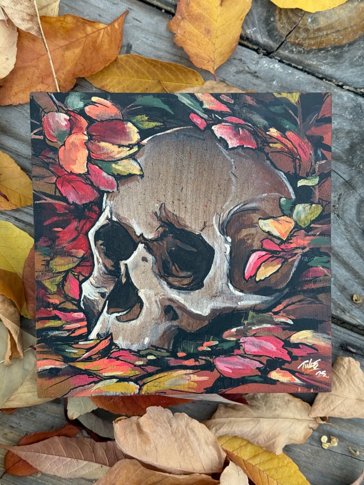 Hope you enjoy my new painting “Autumn Leaves” 7”x7”x1.25” on wood panel. These small and spooky paintings are perfect for the Halloween season with a price that wont scare you away! 👻 All paintings are on hand made wooden surfaces making each piece unique.