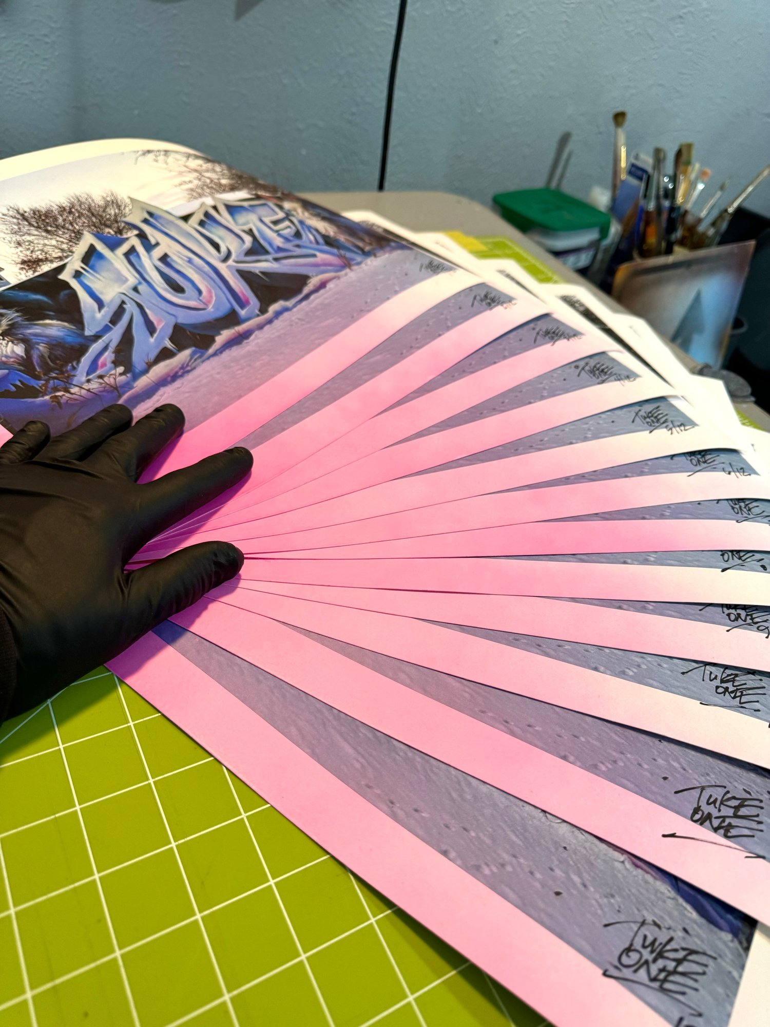 Take the opportunity to have a small piece of my journey with this very limited edition set of prints. These are hand embellished, numbered and signed making each one unique in its own way. I will NOT be printing any more of this wall so once these are gone that's it. These high quality 12"x16" prints are printed on Crane Ultrasmooth Fine Art 285 gsm 100% Cotton 100% Archival paper and were printed locally here in Denver.